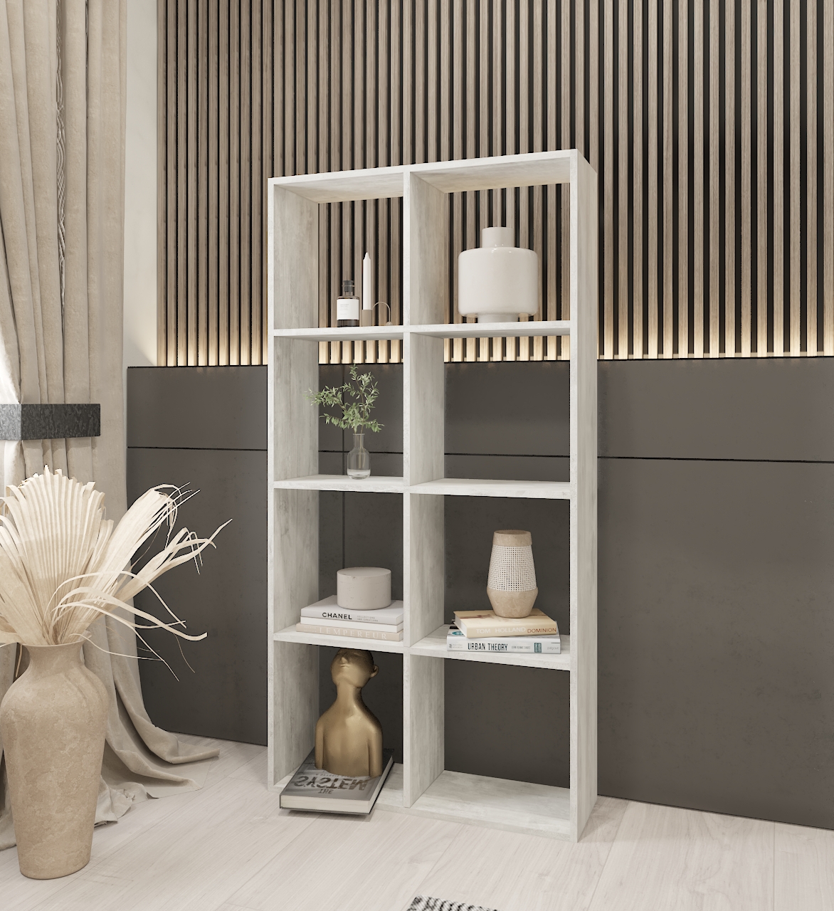 Стелаж виготовлений з якісного ламінованого дсп 16мм, відмінно підійде для того, щоб розділити кімнату на зони або просто зберігати необхідні для Вас важливі речі. Чудово підходить до будь-якого стилю та дизайну і організовує Ваш простір!