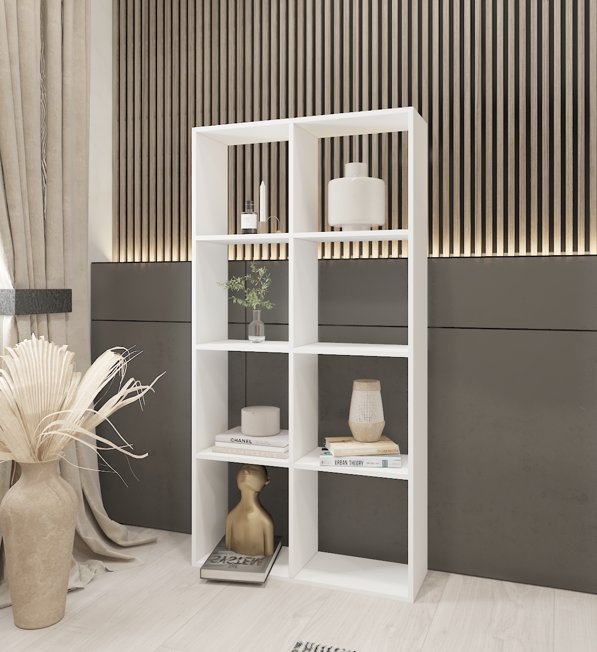 Стелаж виготовлений з якісного ламінованого дсп 16мм, відмінно підійде для того, щоб розділити кімнату на зони або просто зберігати необхідні для Вас важливі речі. Чудово підходить до будь-якого стилю та дизайну і організовує Ваш простір!