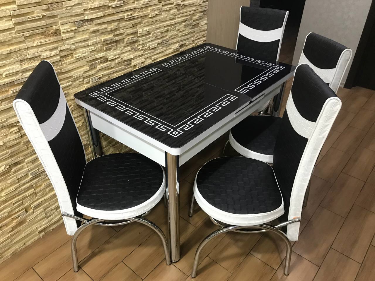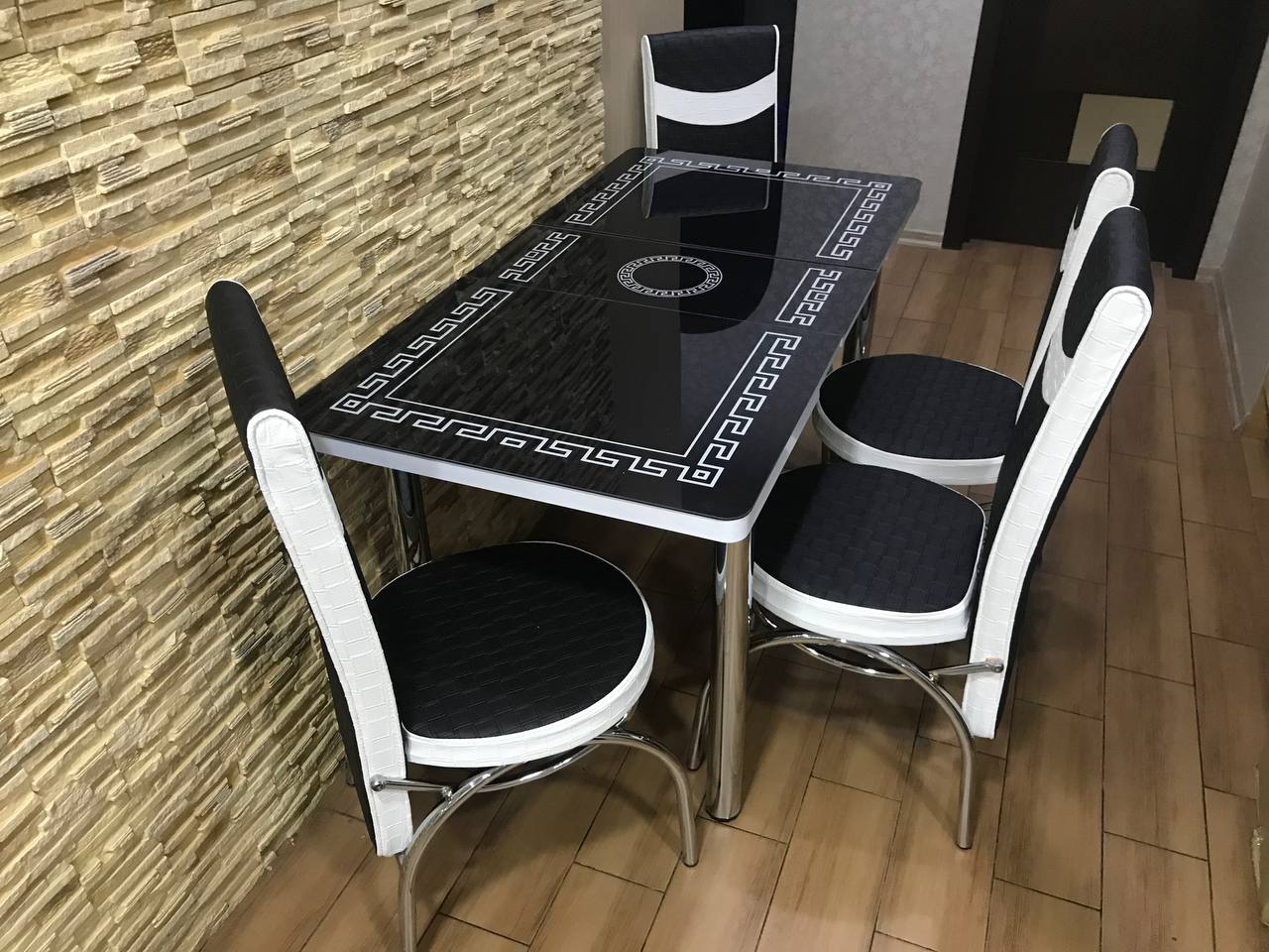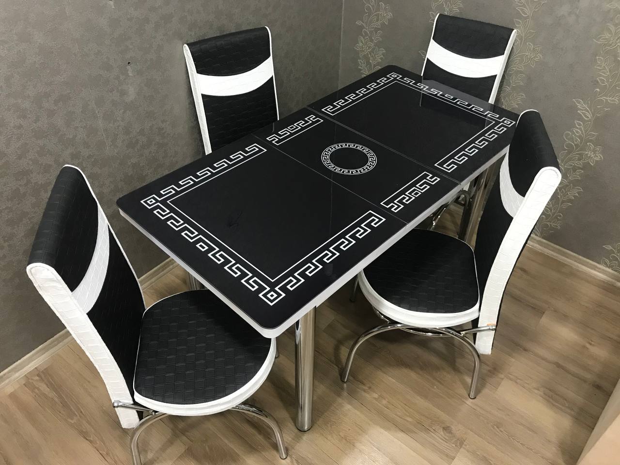 Турецький обідній розсувний 3D стіл на 4 стільці з гартованого скла дсп каркас