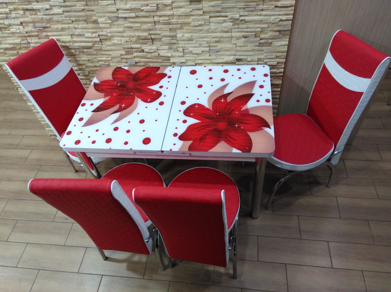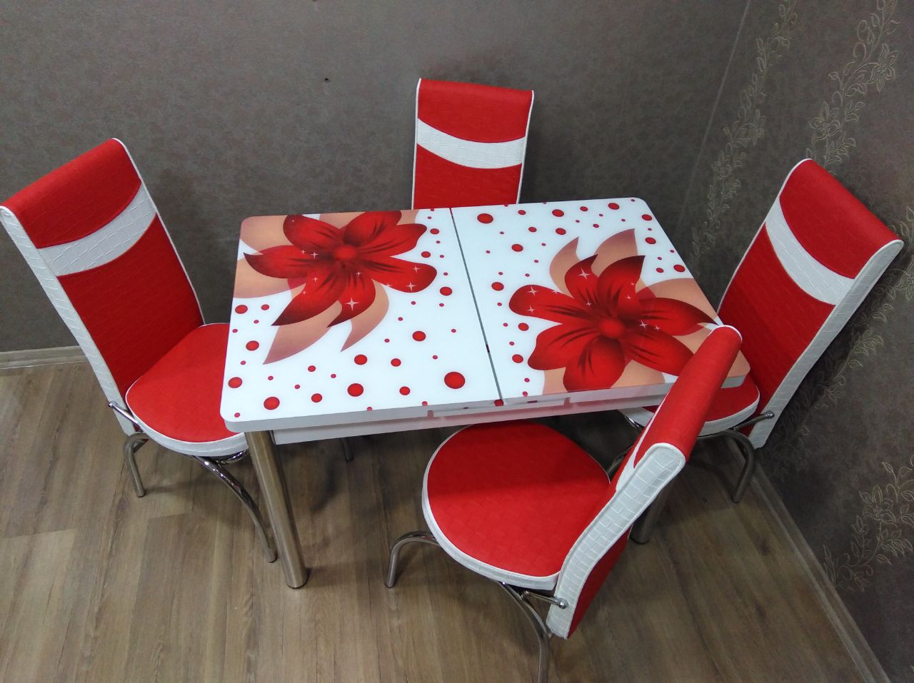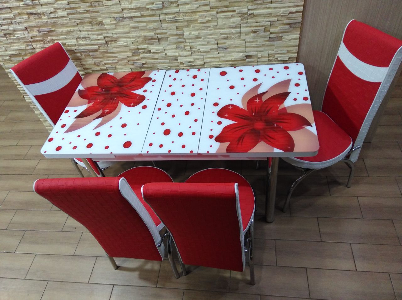Турецький обідній розсувний 3D стіл на 4 стільці з гартованого скла дсп каркас