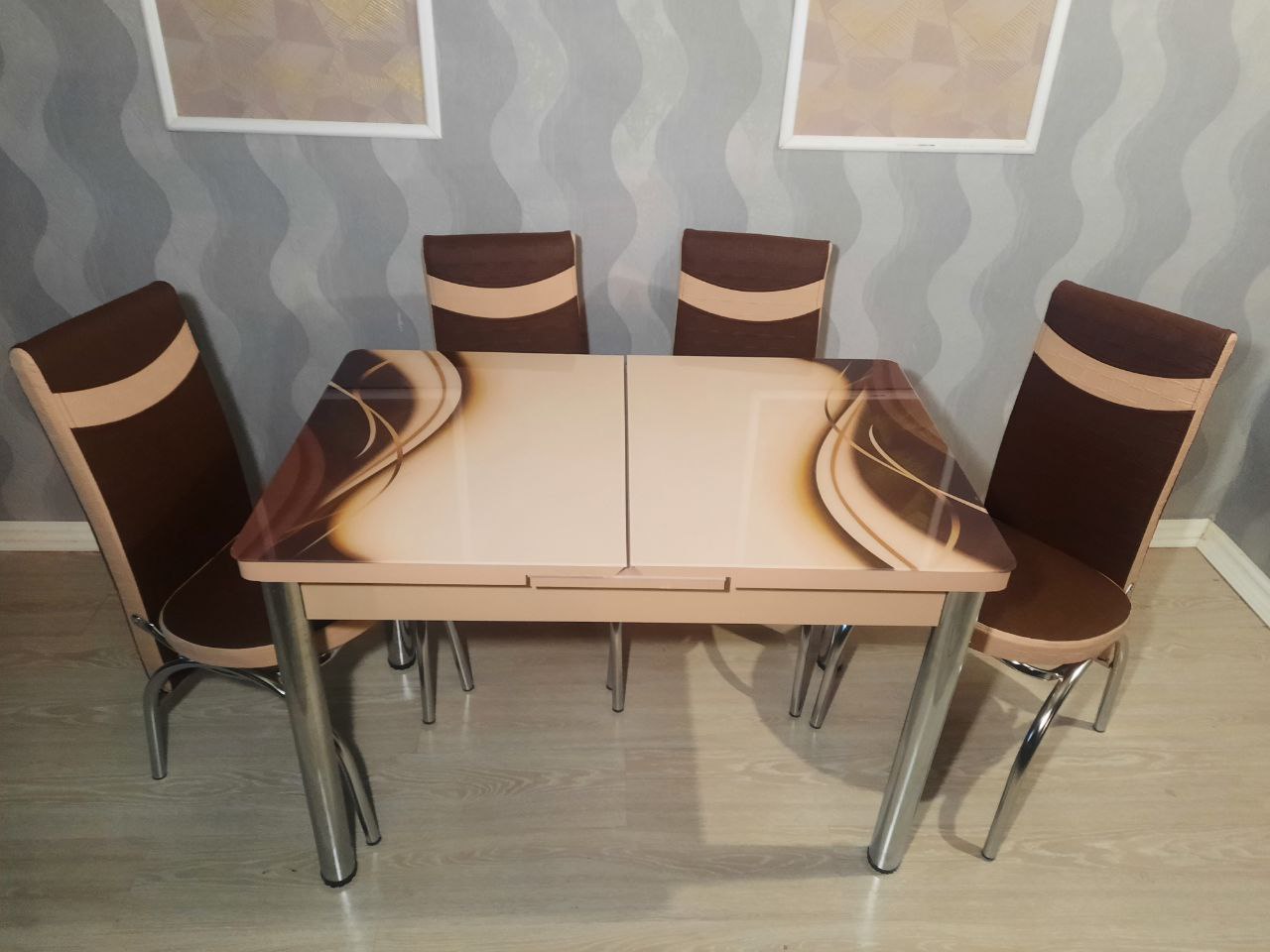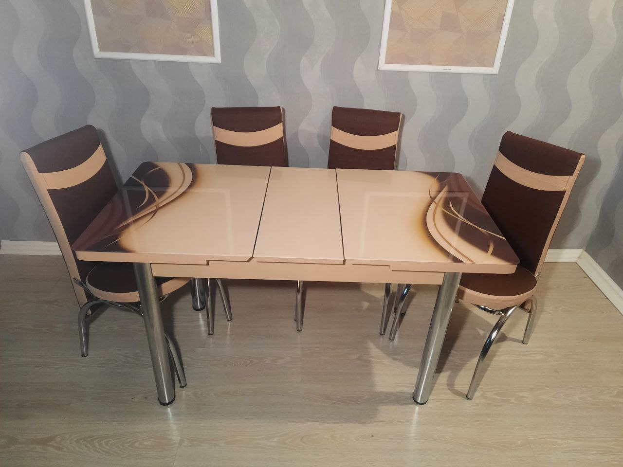 Турецький обідній розсувний 3D стіл на 4 стільці з гартованого скла дсп каркас