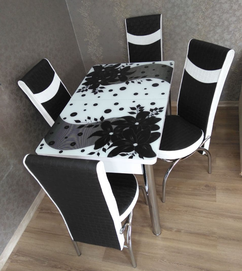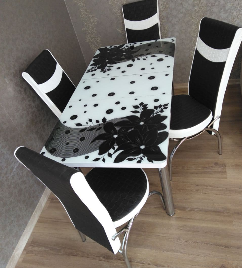 Турецький обідній розсувний 3D стіл на 4 стільці з гартованого скла дсп каркас