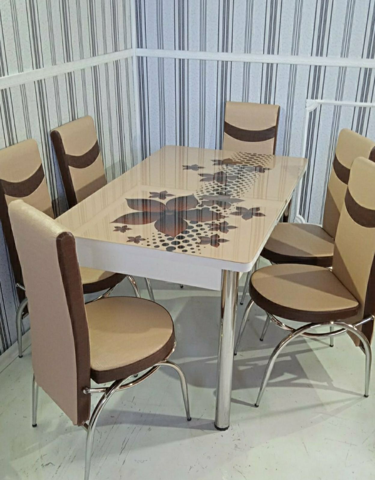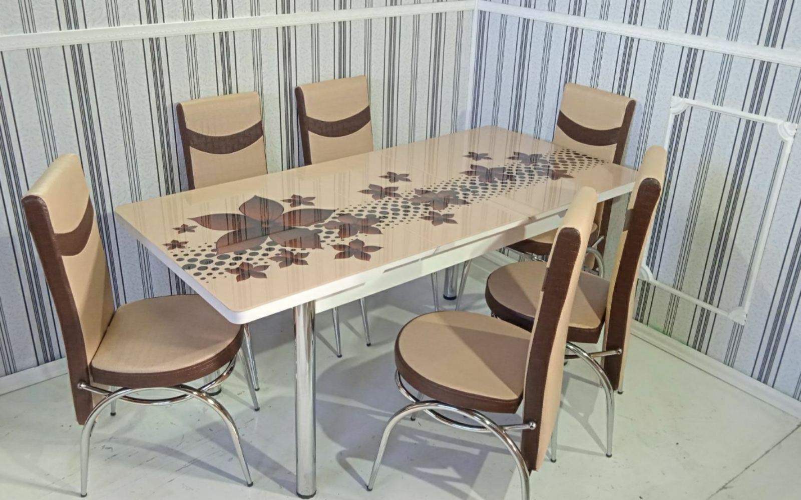 Турецький обідній розсувний 3D стіл на 4 стільці з гартованого скла дсп каркас