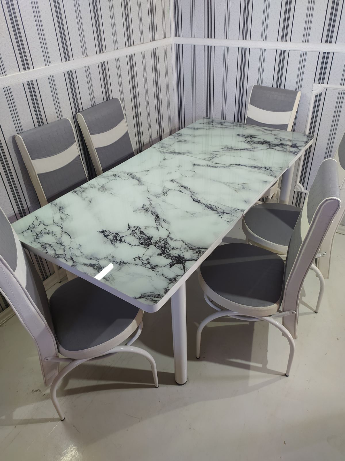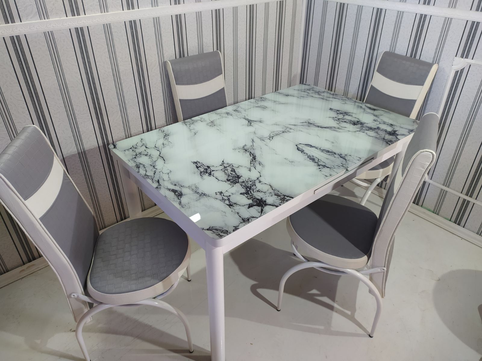 Турецький обідній розкладний 3D стіл на 4 стільці з гартованого скла дерев'яний каркас