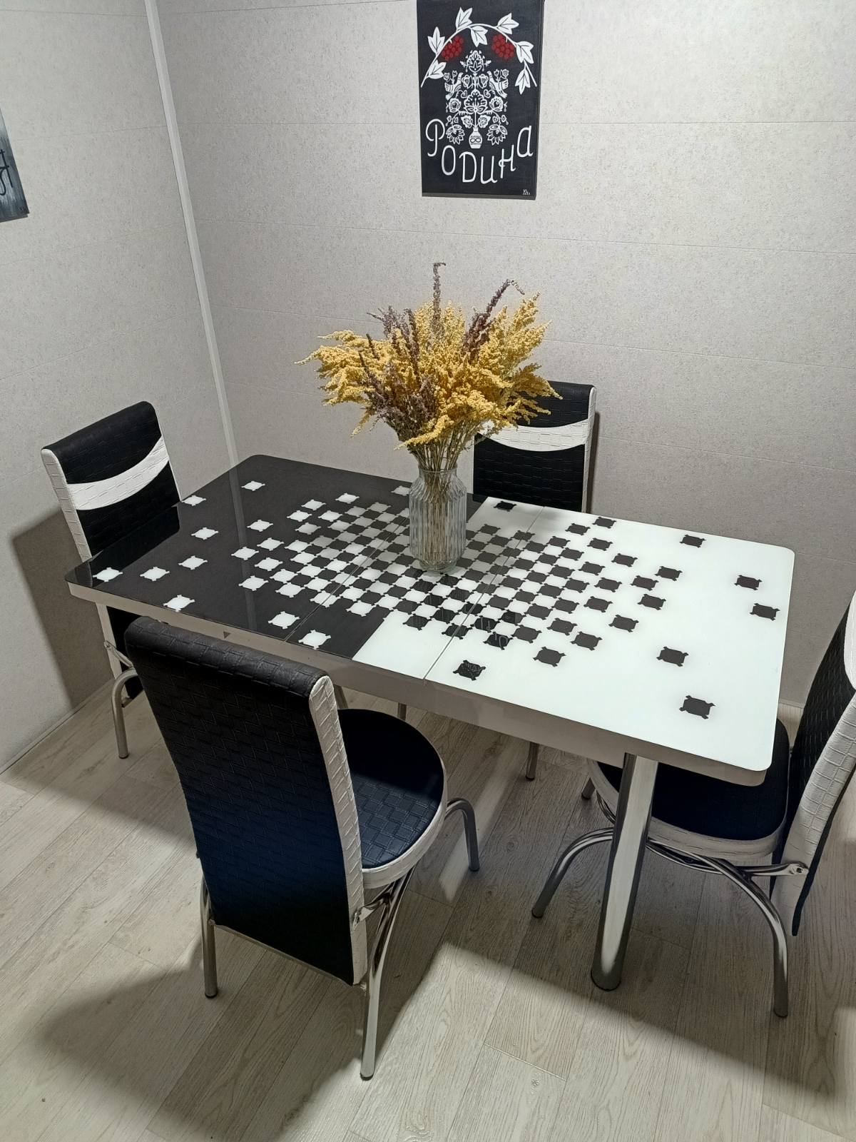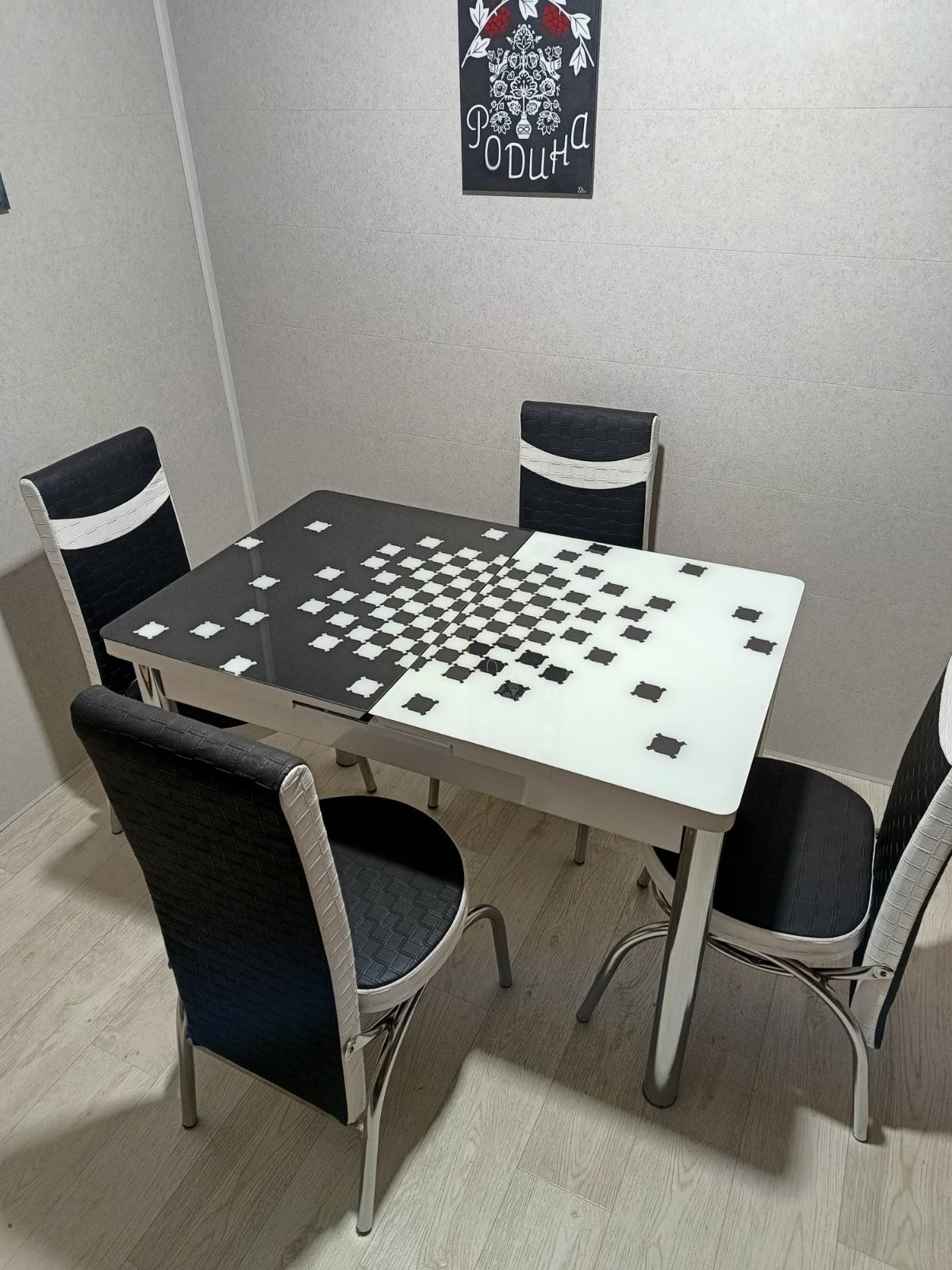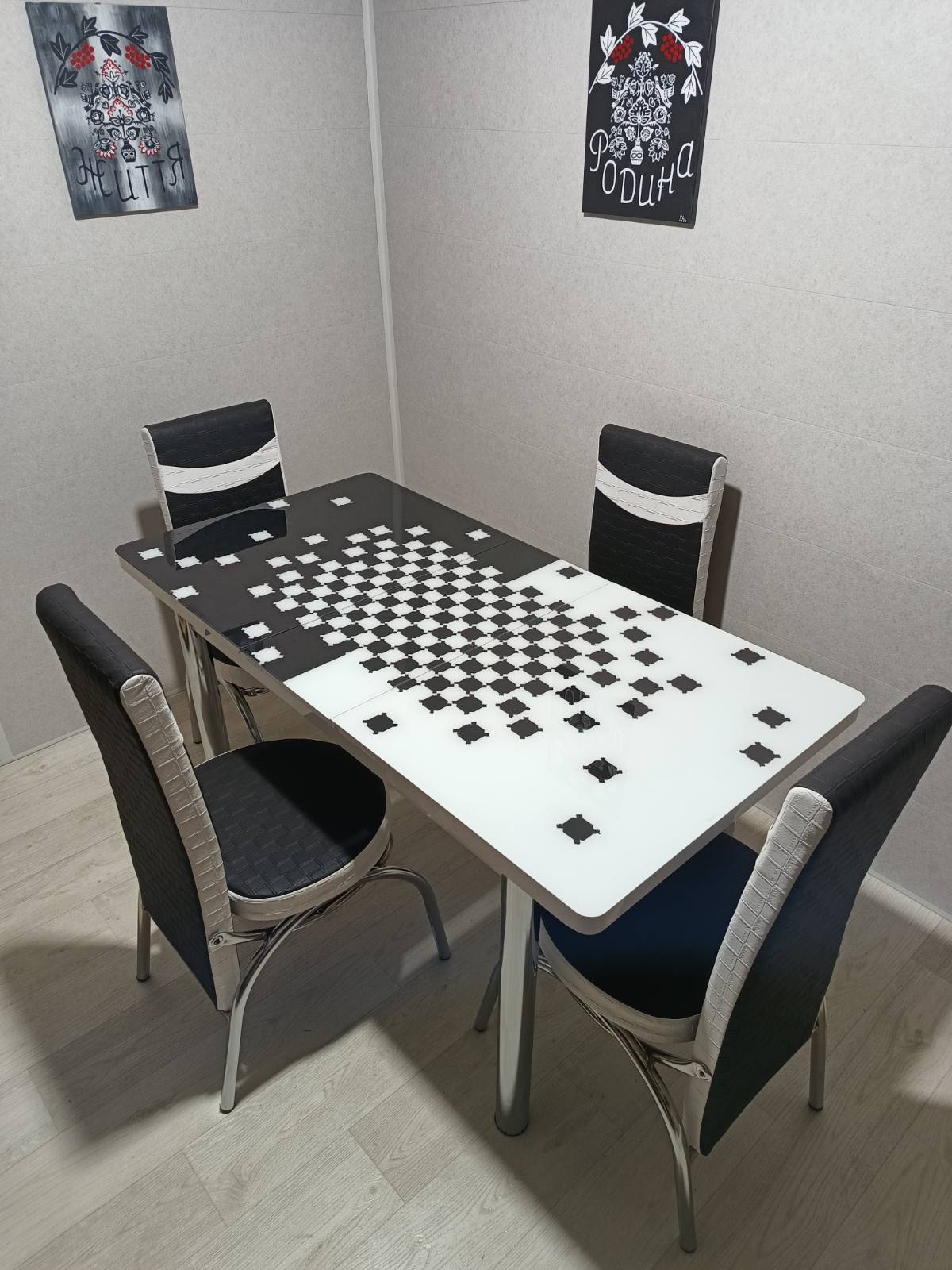 Турецький обідній розкладний 3D стіл на 4 стільці з гартованого скла