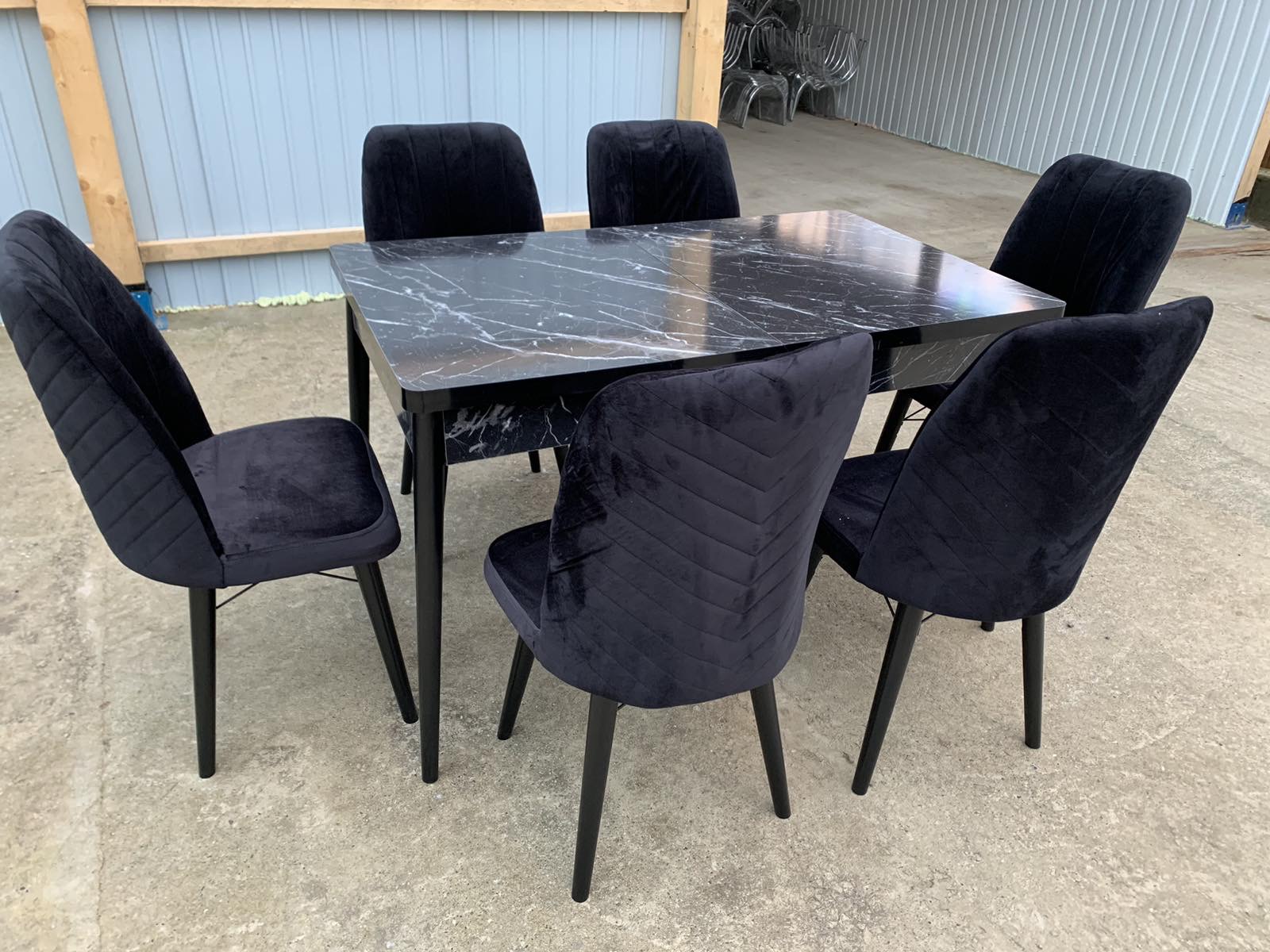 Турецький обідній розкладний 3D стіл та 6 стільців з ЛДСП дерев'яний каркас