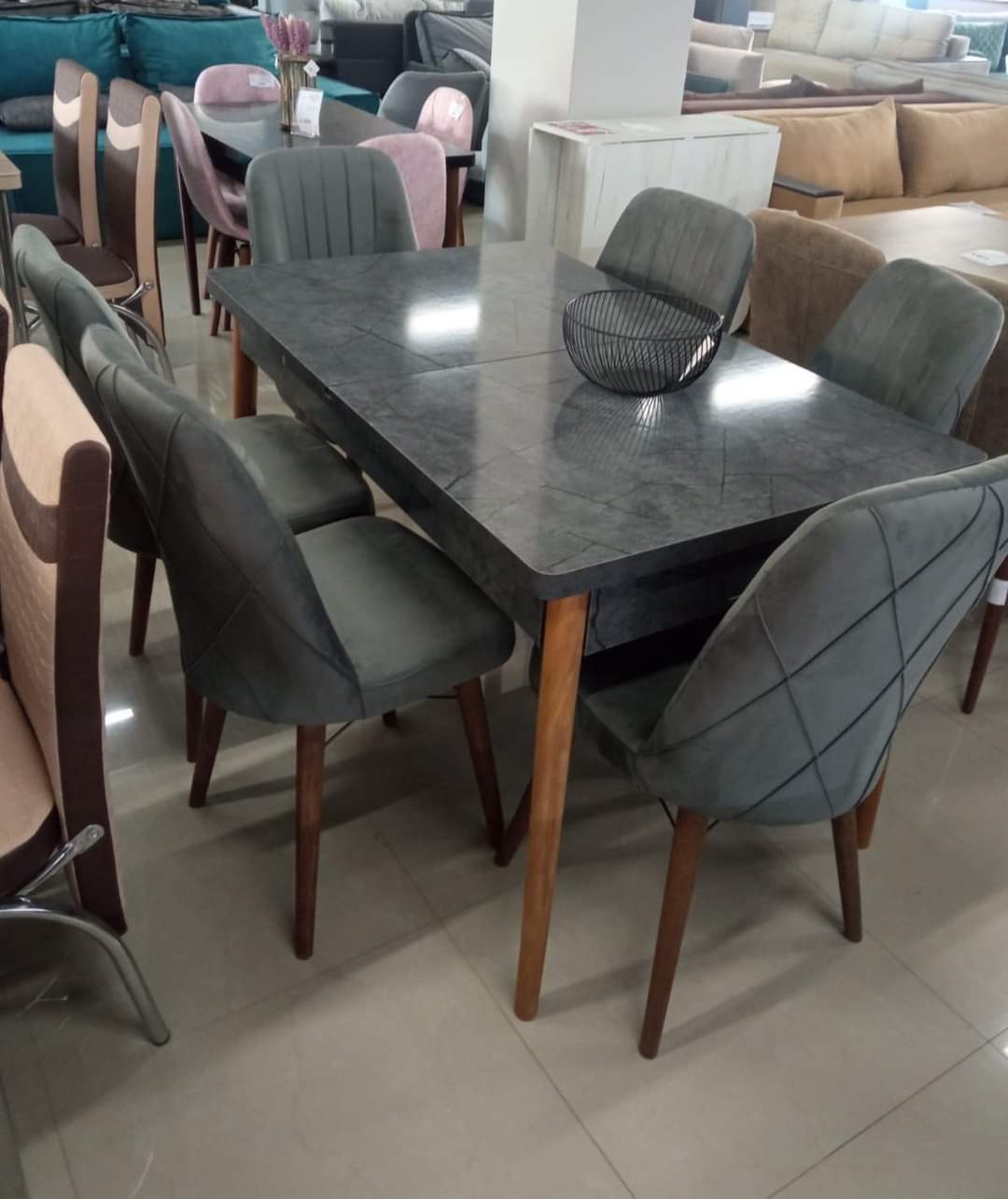 Турецький обідній розкладний 3D стіл та 6 стільців з ЛДСП дерев'яний каркас