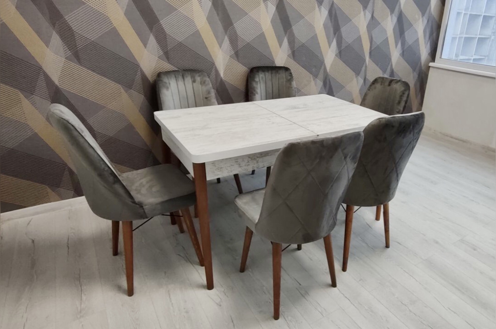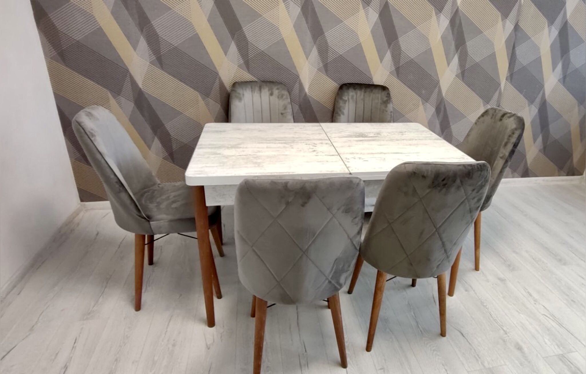 Турецький обідній розкладний 3D стіл та 6 стільців з ЛДСП дерев'яний каркас