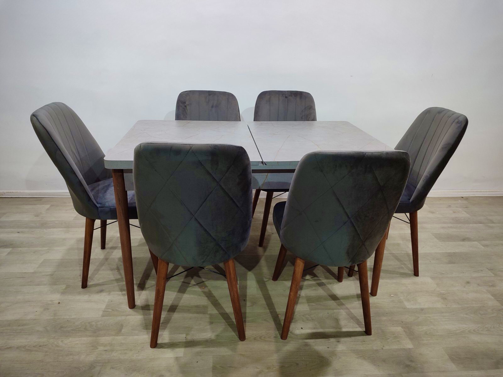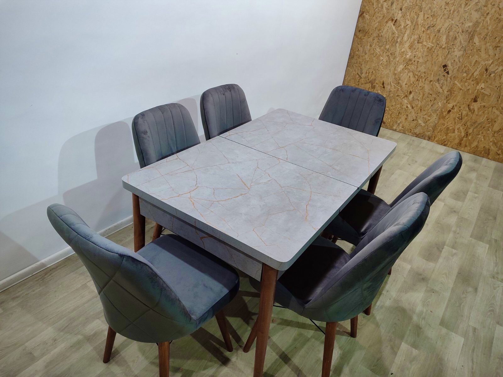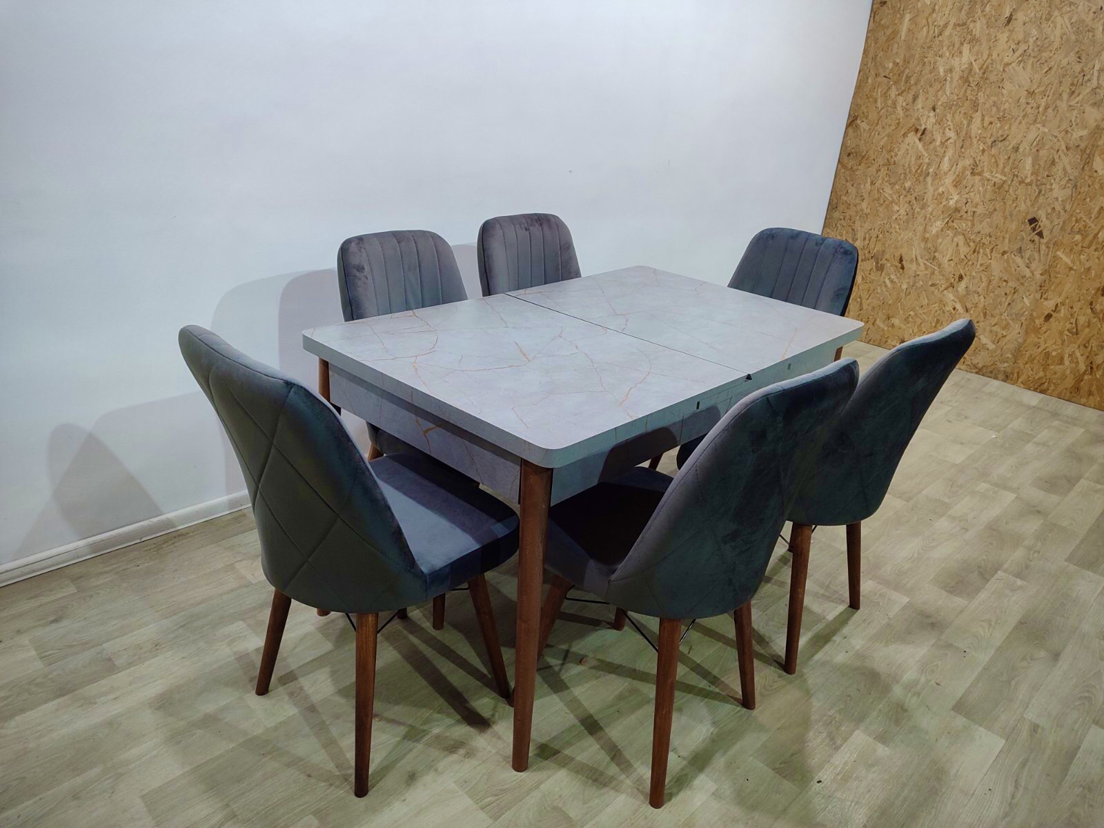 Турецький обідній розкладний 3D стіл та 6 стільців з ЛДСП дерев'яний каркас