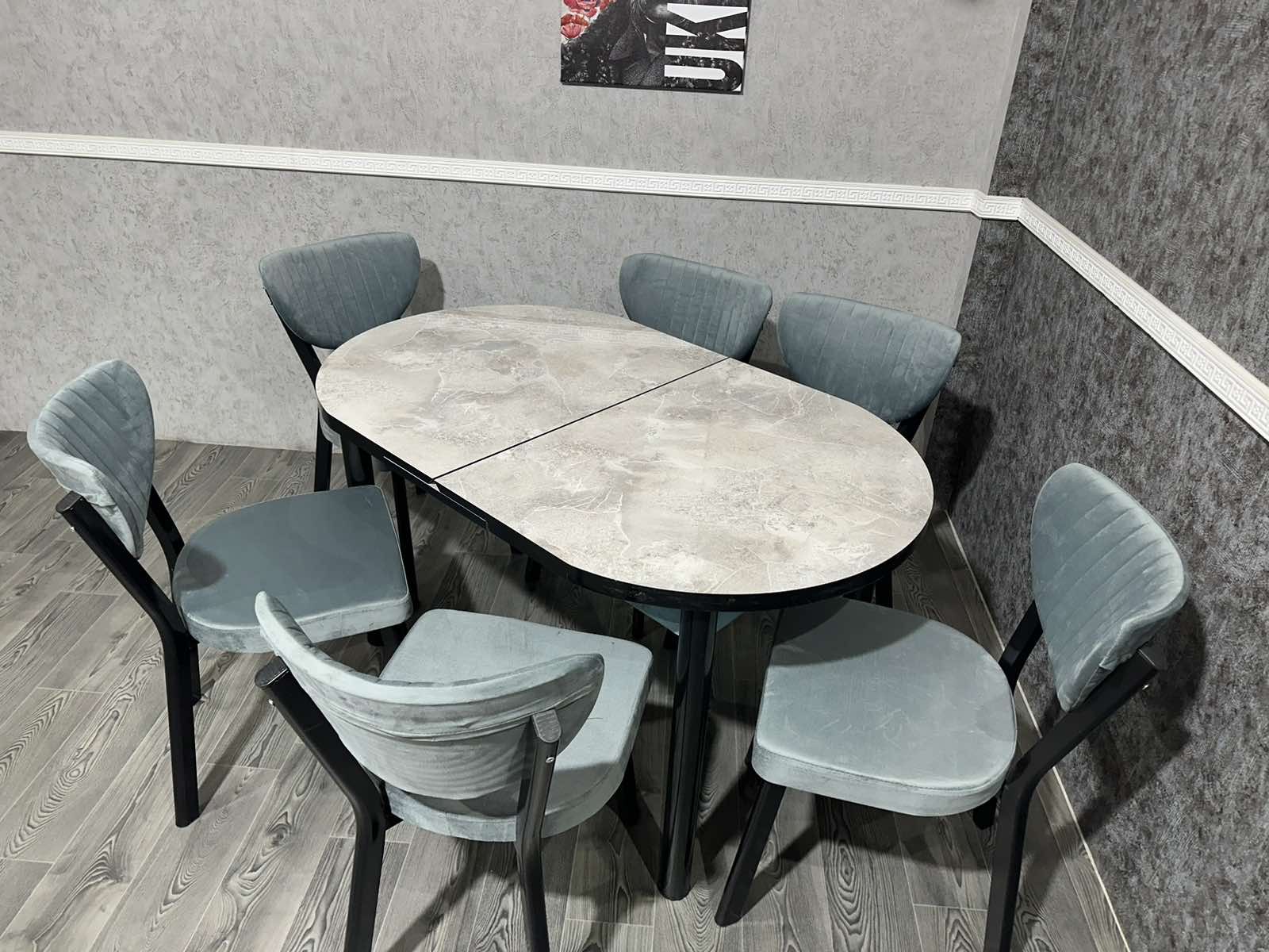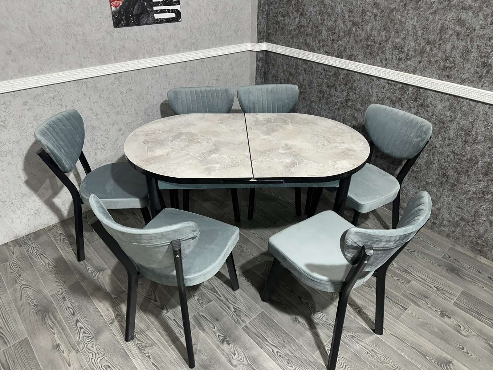 Турецький обідній розкладний 3D стіл та 6 стільців